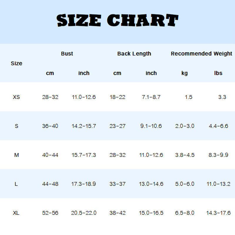 Bei der Größenauswahl sollten Sie vor allem auf den Brustumfang und die Rückenlänge achten, insbesondere bei Rassen wie Schnauzern, Französischen Bulldoggen und Katzen.