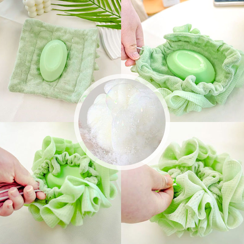 WEICH & SCHÄUMEND: Dieser Schwamm aus weichen, hochwertigen Materialien verfügt über ein fein gewebtes Netz, das einen reichhaltigen, luxuriösen Schaum erzeugt. Legen Sie einfach Ihre Seife hinein, ziehen Sie die Kordel zu und genießen Sie ein cremiges, schaumiges Bad.